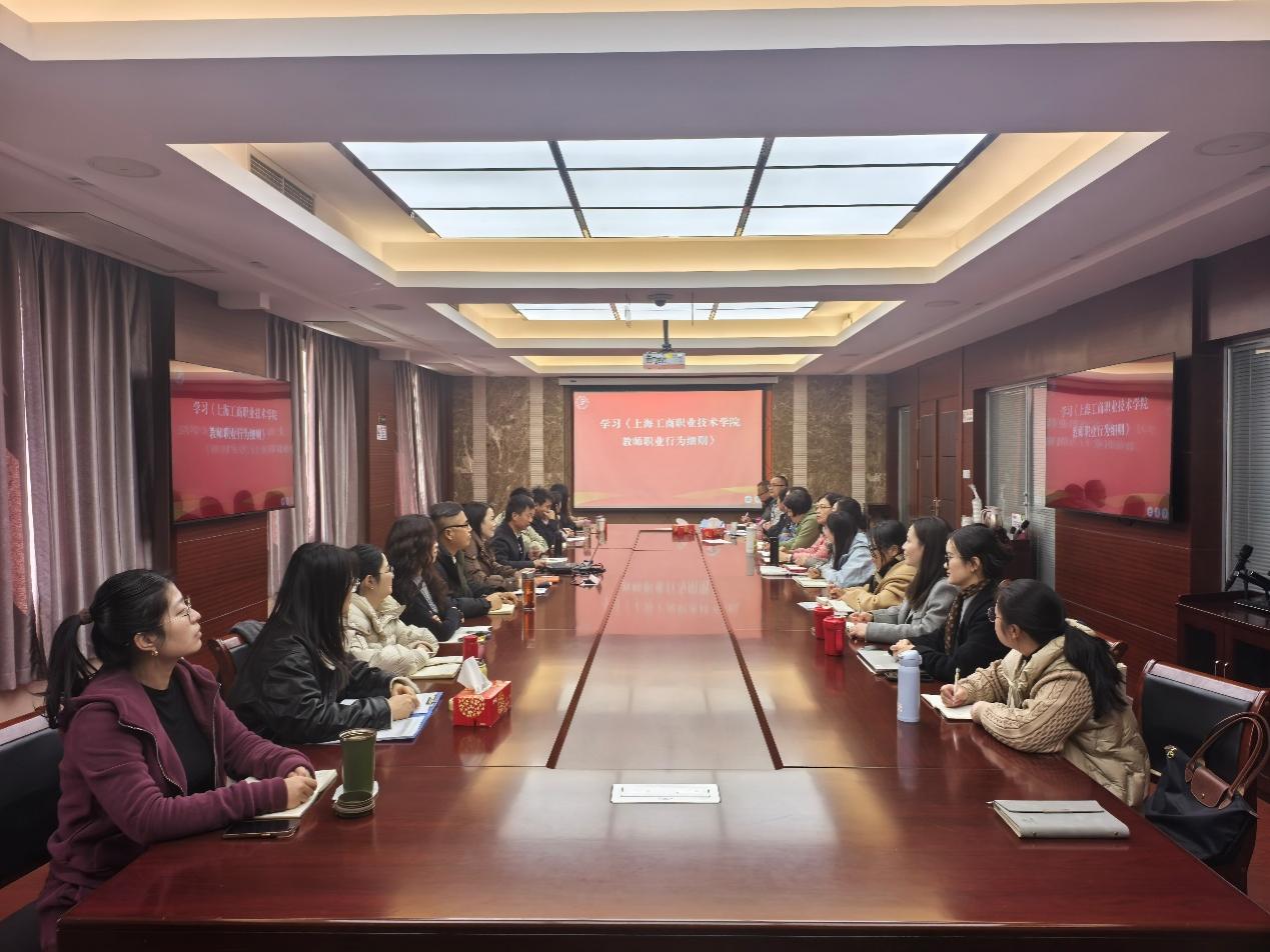为进一步规范教师职业行为,筑牢师德师风建设防线,强化全体教师的纪律意识和责任担当,2025年12月19日14:30,马克思主义学院、公共基础学院直属党支部组织专题学习会,集中学习《上海工商职业技术学院教师职业行为细则》(以下简称《细则》)。会议由党支部纪检委员担任领学人,全体教师参加学习。